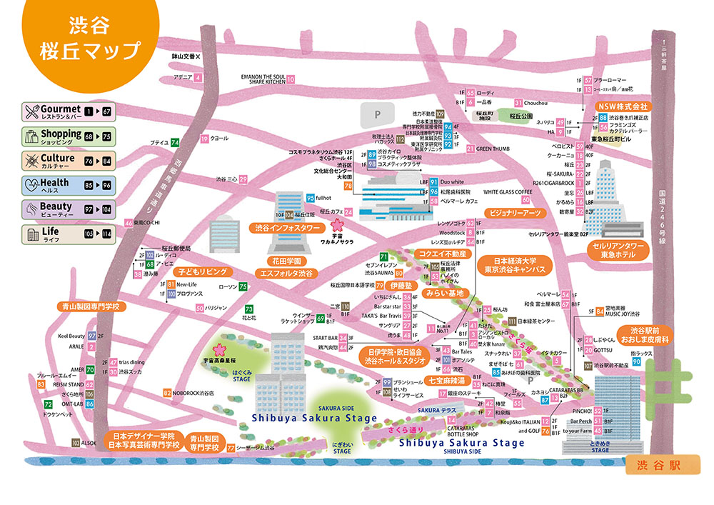 渋谷桜丘マップは、各マップ掲載店にて配布しています。